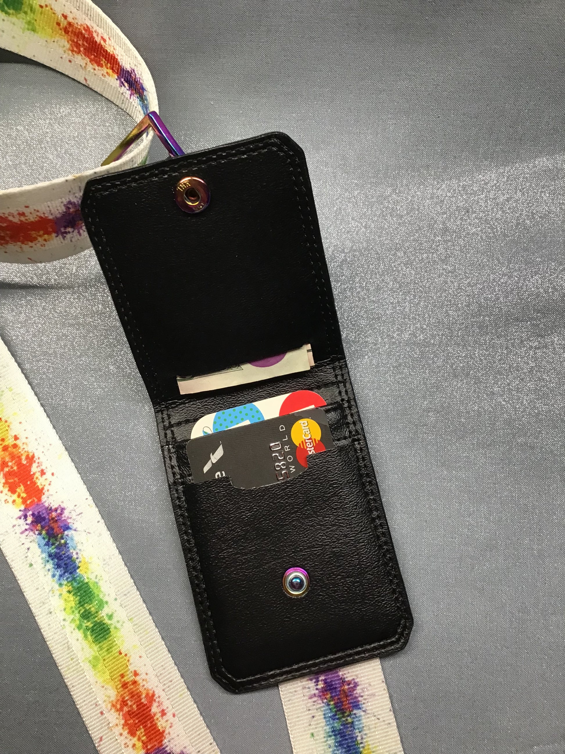 No pockets, no problem. Turn your phone case into the perfect hands free accessory. The coordinating wallet holds everything you might need. Hand crafted from faux leather and has an adjustable seatbelt webbing strap for comfort.
