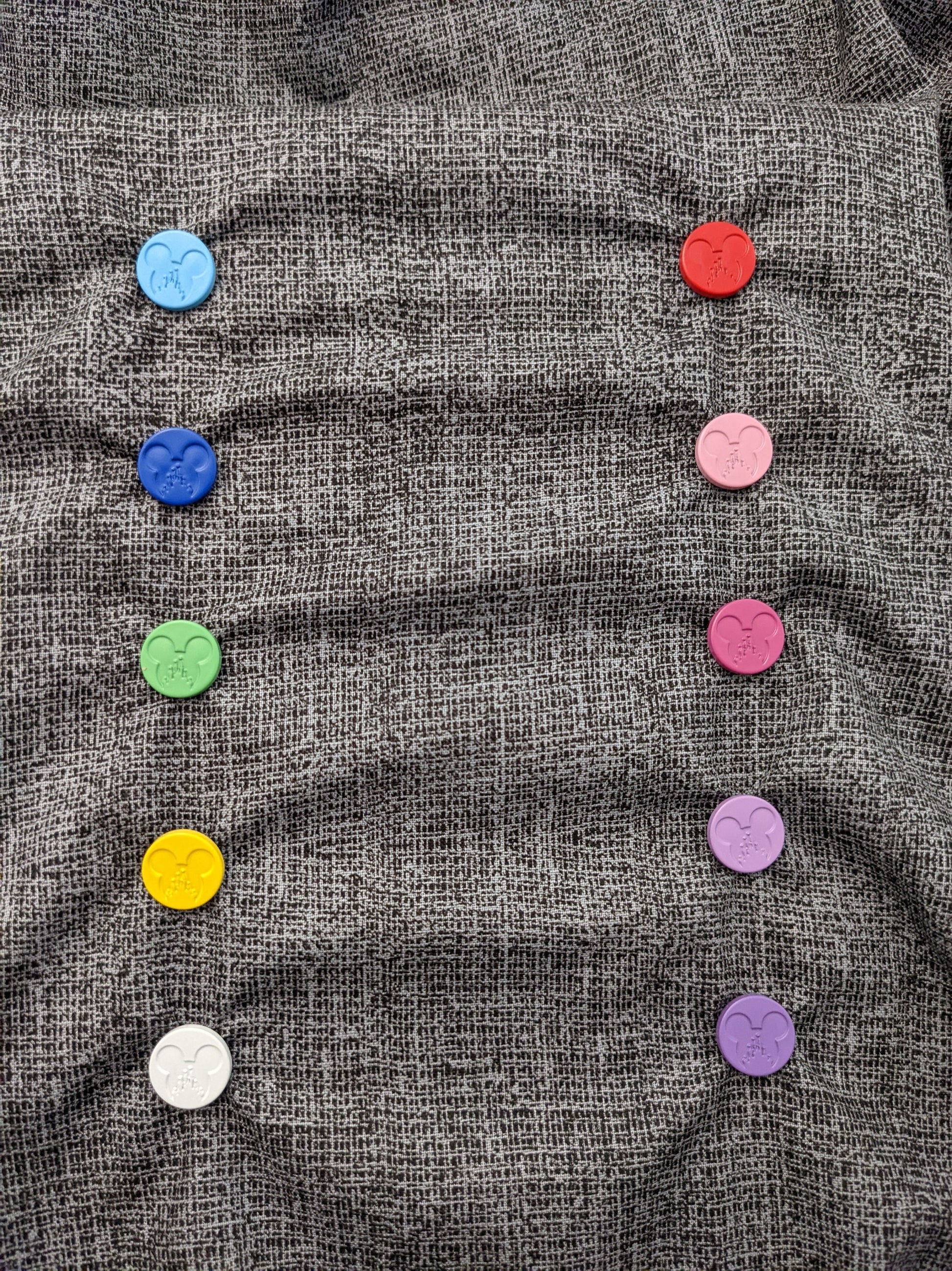 Snaps are sold in sets of 10 or 50. Each set is 10 of the same color or you can choose a variety pack of 10 that contains one of each color. The sets of 50 will be 5 of each of the 10 colors.