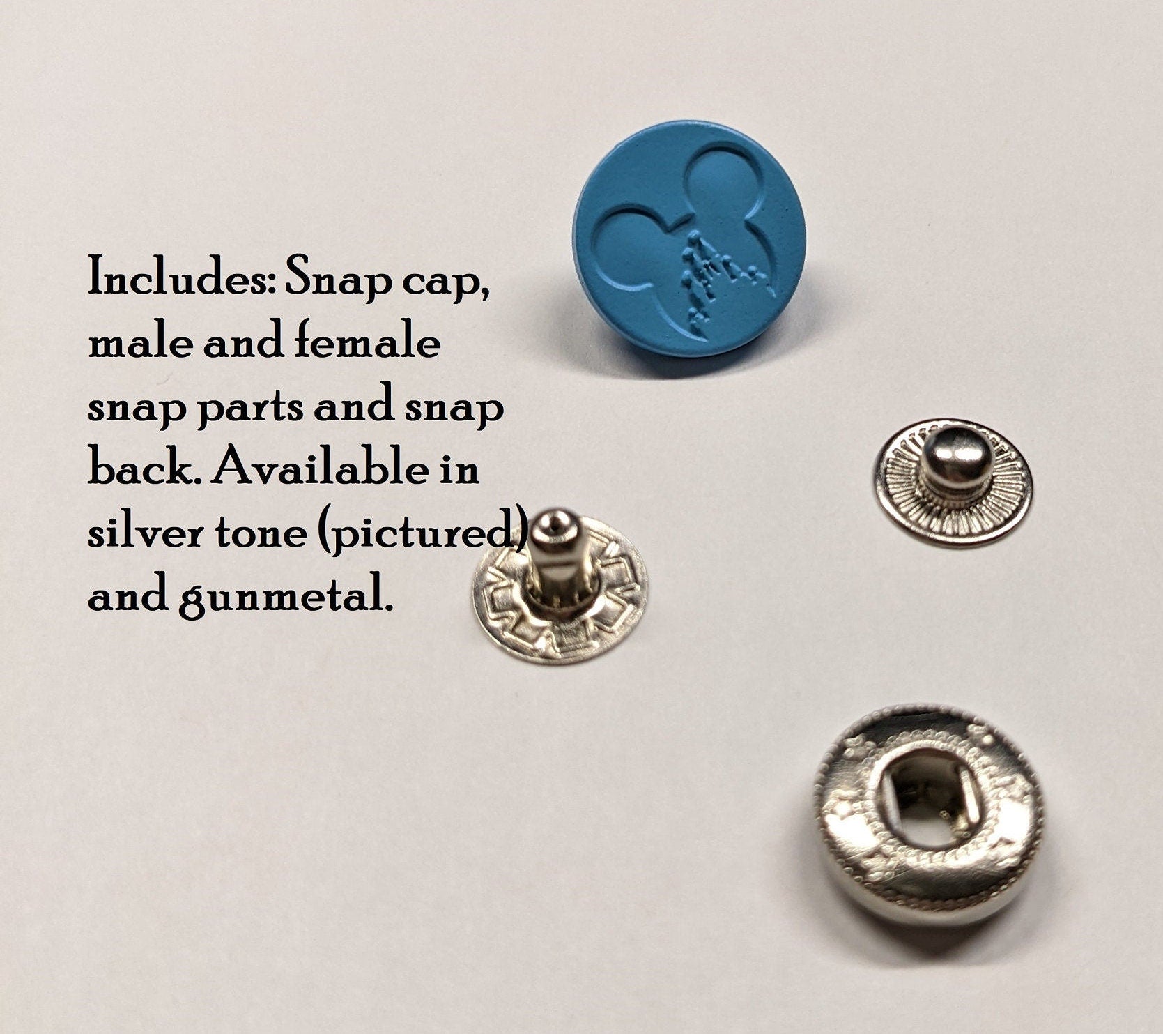 The snap back, male and female parts of the snap are included and come in nickel or gunmetal. If you have a preference in the color of these parts, please add a note to your order.