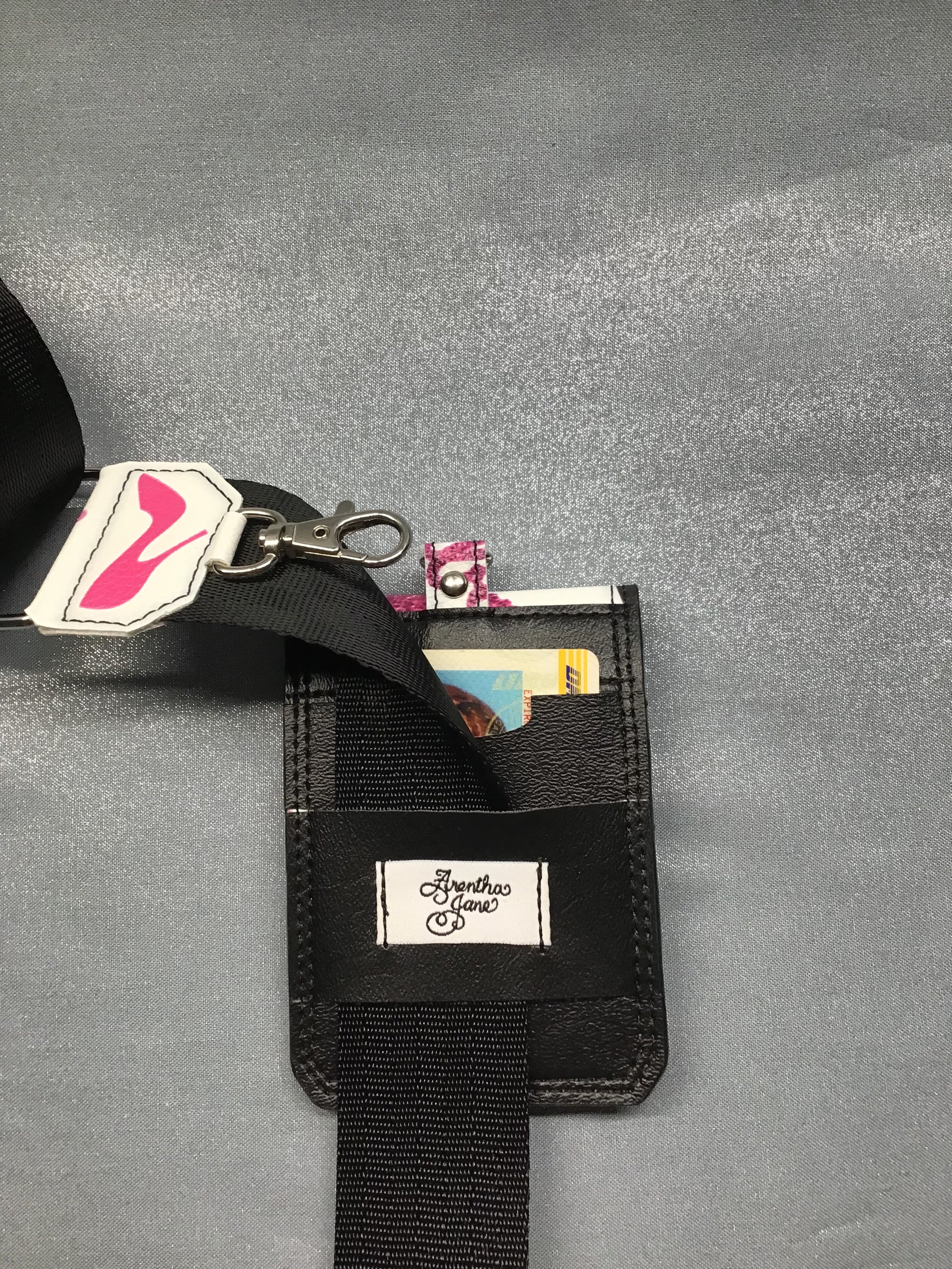 No pockets, no problem. Turn your phone case into the perfect hands free accessory. The coordinating wallet holds everything you might need. Hand crafted from faux leather and has an adjustable seatbelt webbing strap for comfort.